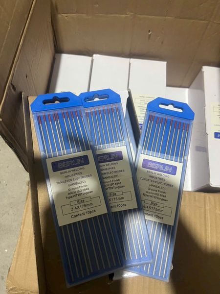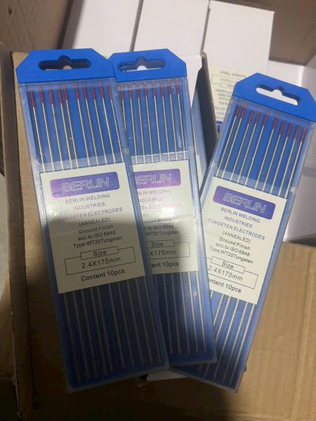 Que hàn TIG tungsten Berlin WT20 (đầu đỏ) là dòng điện cực hàn TIG chuyên dụng, được sử dụng phổ biến trong ngành cơ khí, inox, kết cấu thép và gia công chính xác.